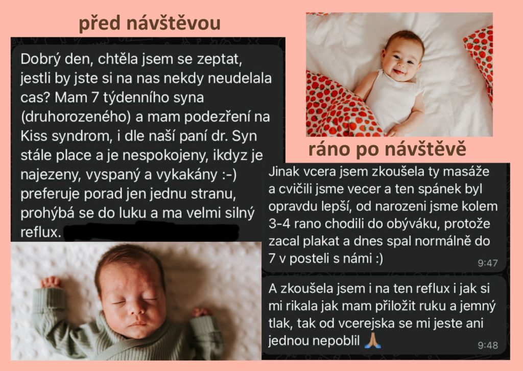 Každé dítě a jeho rodina jsou jiné. Jedno potřebuje uvolnit blokádu v oblasti týlu nebo hrudníku, u druhého se řeší reflux a třetí miminko se budí po krátkých intervalech spánku, protože má přetížený nervový systém po těžkém porodu.